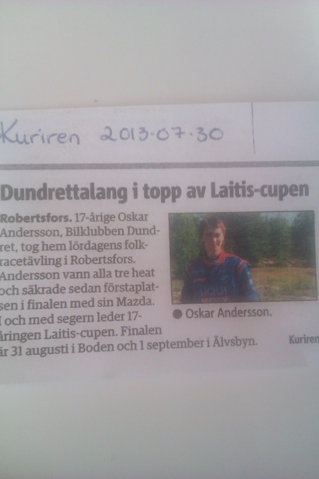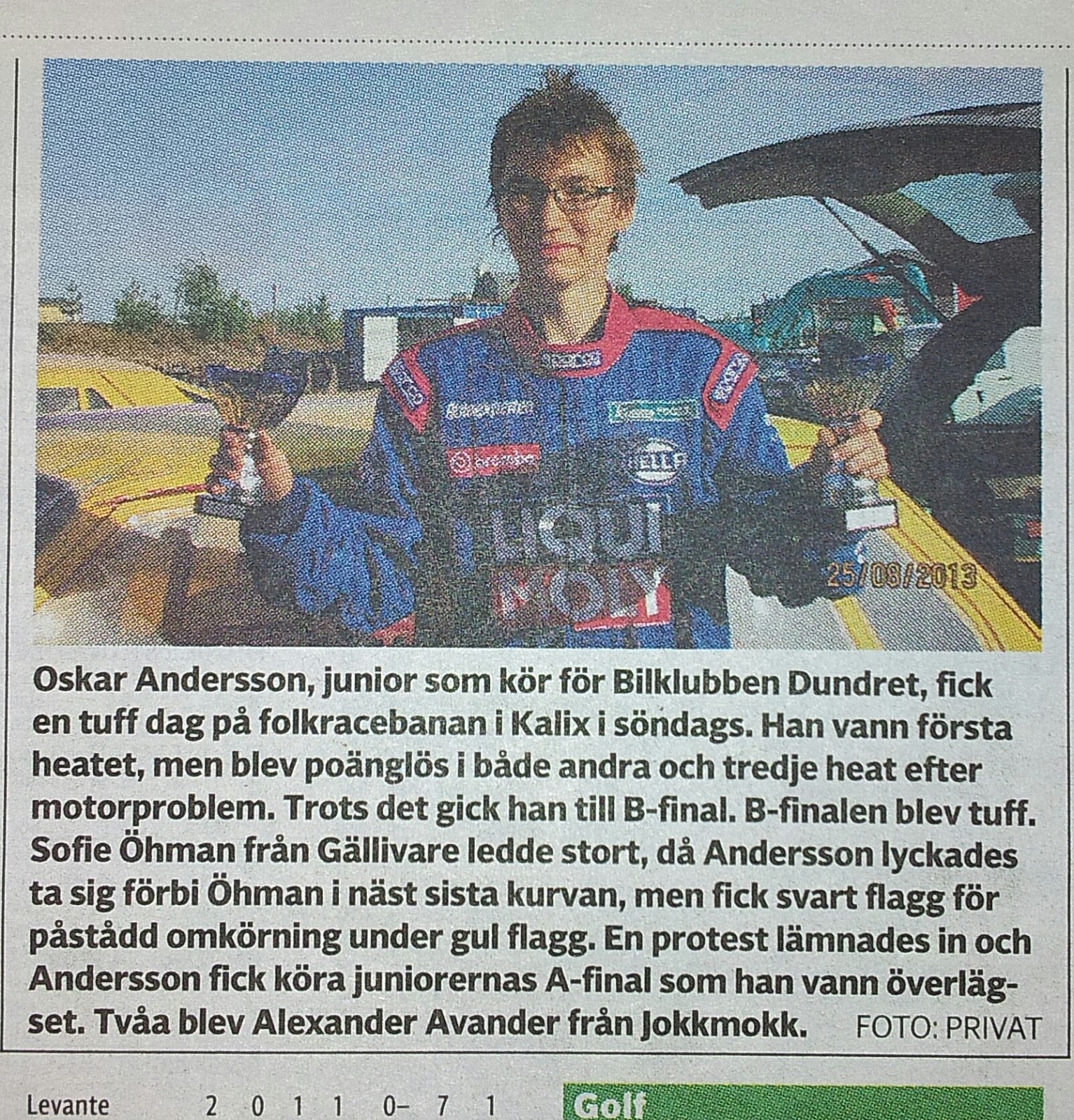 Det är riktigt roligt när folkrace hamnar i tidningen, har sett bland annat Marcus Nyström i Piteå Tidningen. Marcus är bara en av alla de förare som brukar hamna i tidningen, det beror ofta på att något har gått extra bra. Här nedanför så finns massor av tidningsklipp som jag har samlat på mig i år!