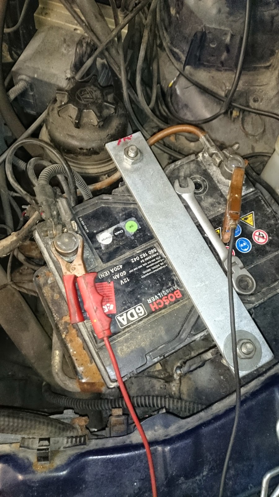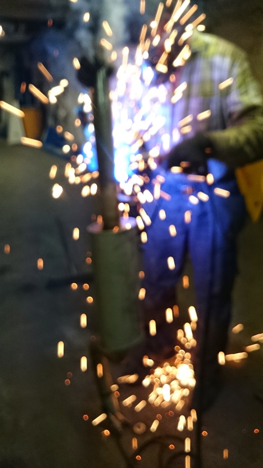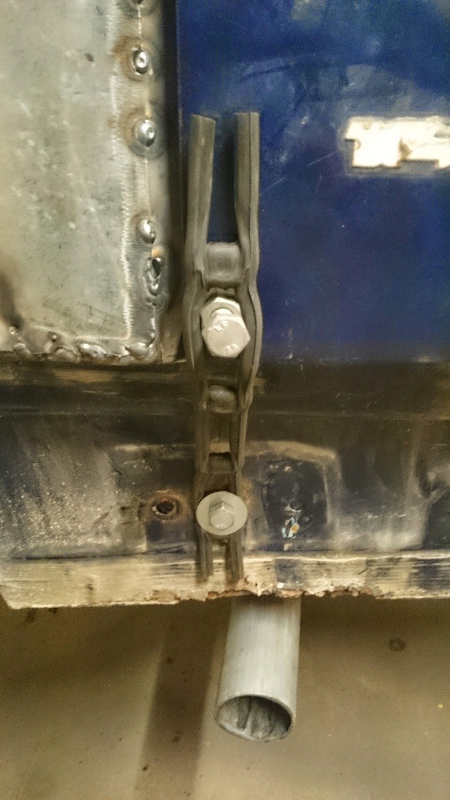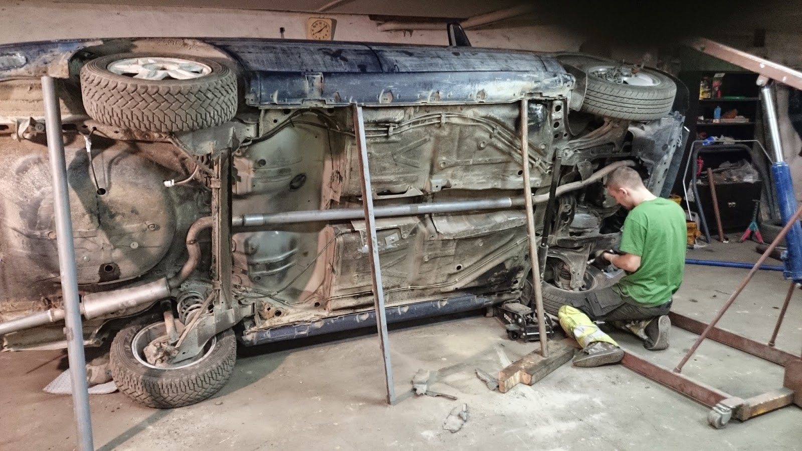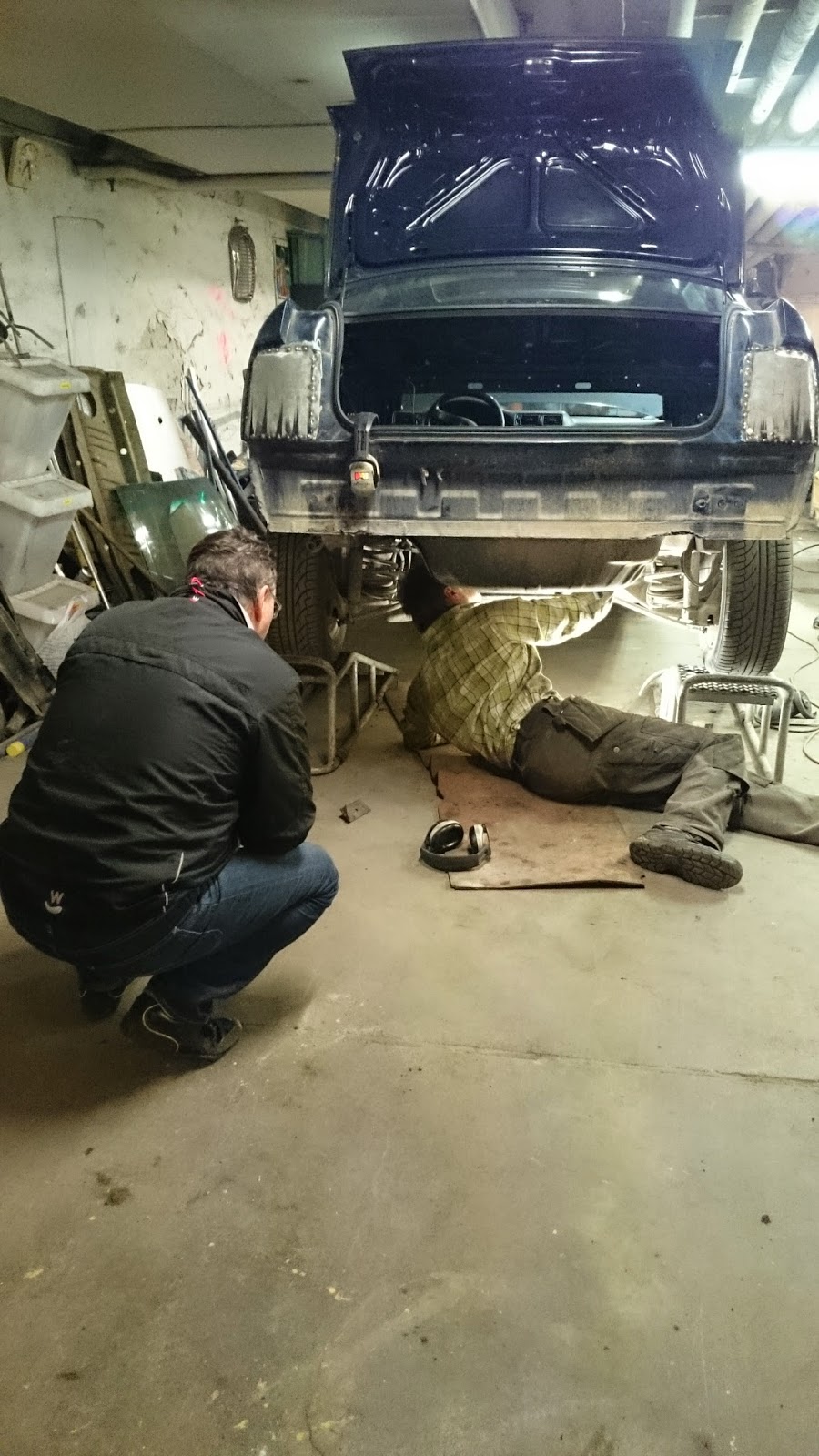Pappa fick svetsa avgassystemet undertill. Vi körde upp bilen och så fick han svetsa där medans jag gjorde annat.