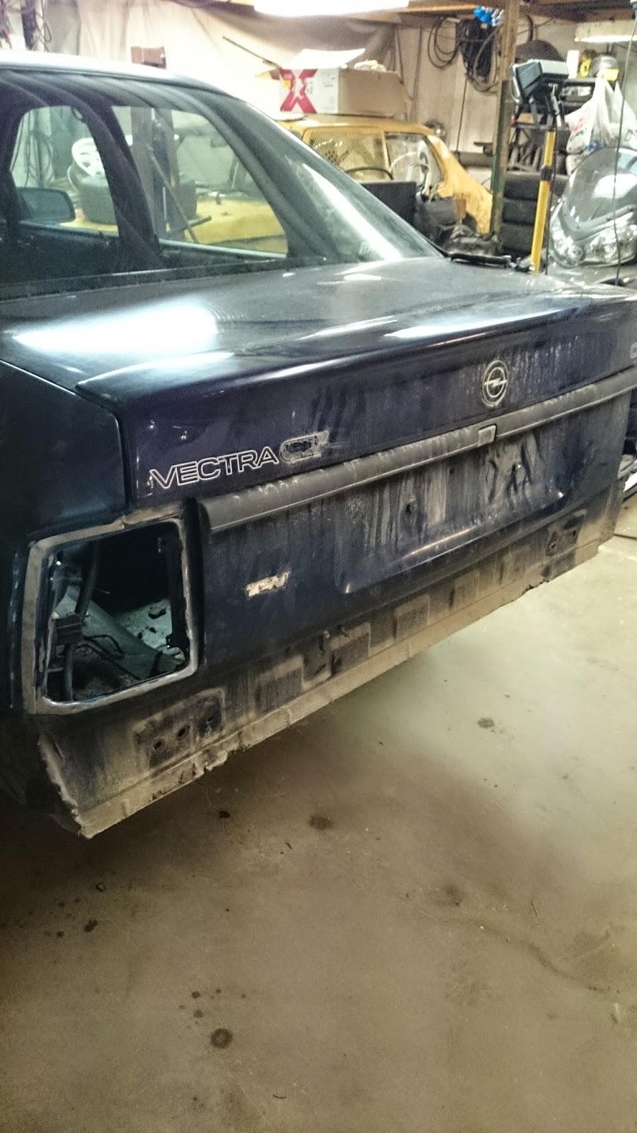 Vi tog även bort lyserna bak och svetsade igen med små plåtar där så att det skulle se hyffsat ut ändå.