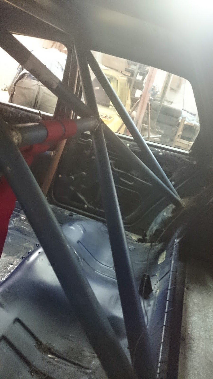 Vi tog såklart bort takluckan och svetsade igen där. Det här var en av de sista sakerna vi gjorde då vi hade användning för takluckan när vi la in bågen i bilen.
