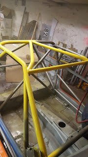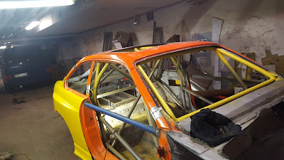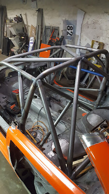 Karossen med bur åker på skroten då vi inte inom en snar framtid kommer kunna bygga någon bil där bågen passar. Vissa rör har ju även vikt sig så hade behövt byta ut halva bågen.