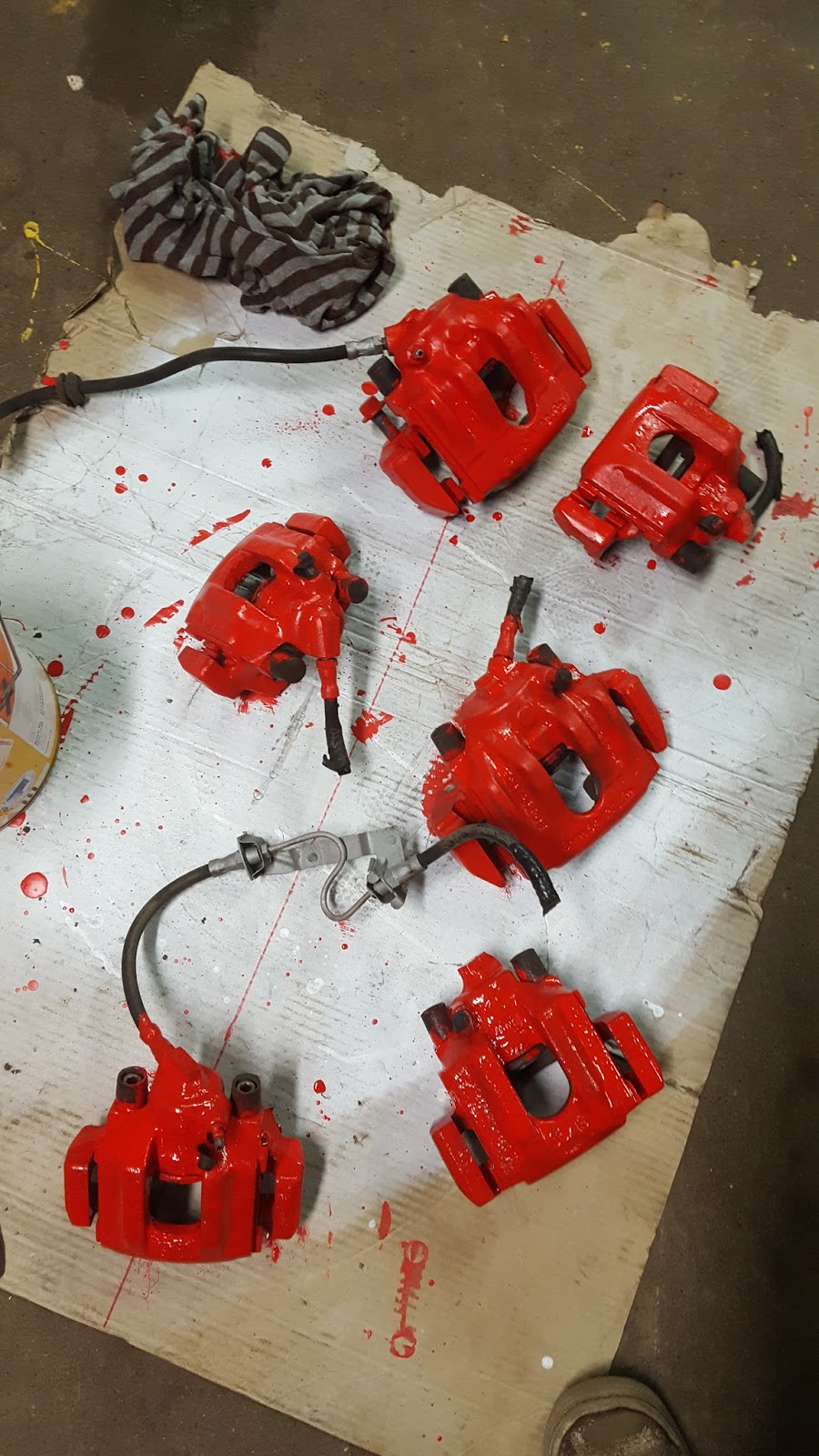 Orginal bromsok, såklart blästrade. Tyckte dom vart riktigt bra. Dom här oken blev bara penselmålade, men jag tyckte det dög.