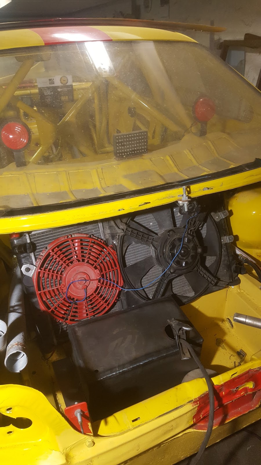 Efter det så demonterade jag allt i bagageutrymmet, demonterade kylare, kylarrören som gick genom hela bilen, batteri och tank. Sen var det lite annat. Vi har byggt om där bak för att få bättre viktfördelning då jag haft väldigt svårt att få iväg bilen i starterna, vi hoppas att den nya motorn och ny viktfördelning ska ge mig bra starter. Tanken är att ha 60-100kg i skuffen, vill kunna ta bort eller stoppa dit vikter efter banan.