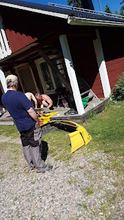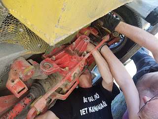 Det är trångt där under när man är flera, jag fick mest ge verktyg den här gången eftersom vi alla inte fick plats att skruva samtidigt.