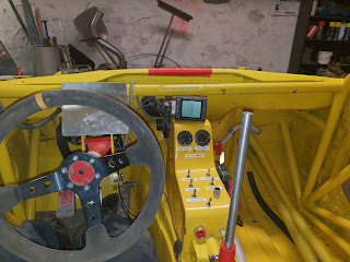 Förutom att vi hämtat motorn så har det hänt lite i garaget, vi har stoppat i stol, pedalställ och förberett för de nya instrumenten som har kommit. Blir en hastighetsmätare som går via gps, mest för skojj skull att kunna se på in-car filmerna hur fort det går. Sen blir det en 7" backkamera så att jag kan ha bättre koll bakåt än förra året.
