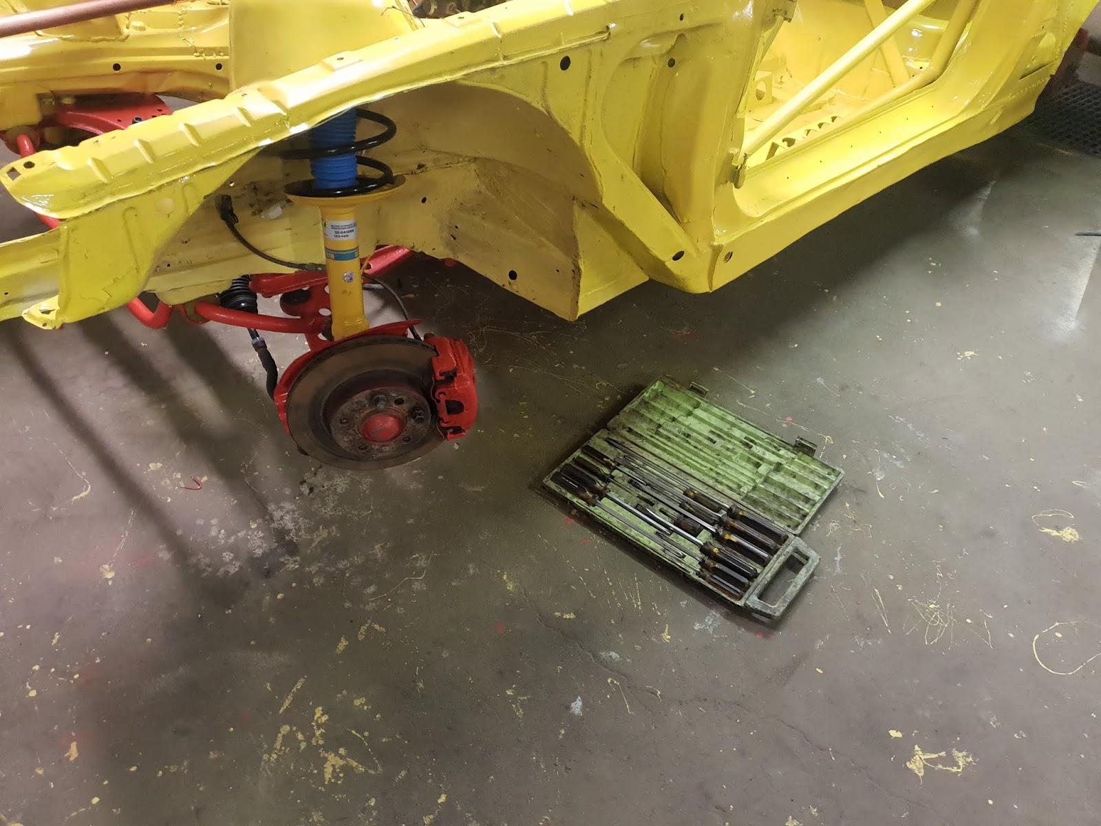 Fjäderbenen fram är äntligen på plats. Fick beställa nya fjädrar igen... Men det känns verkligen som att bilen ska vara i toppskick till första tävlingen i maj.